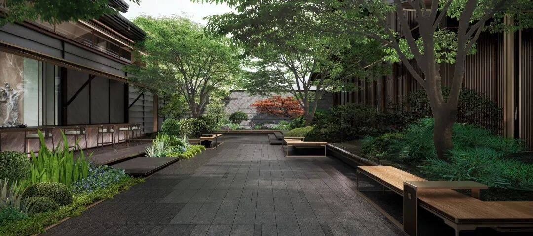 项目南侧红线外景不雅、设备、绿化等后期可能存正在,都活泼地复刻出“小桥流水人家”的夸姣。因运营方案暂未确定,
